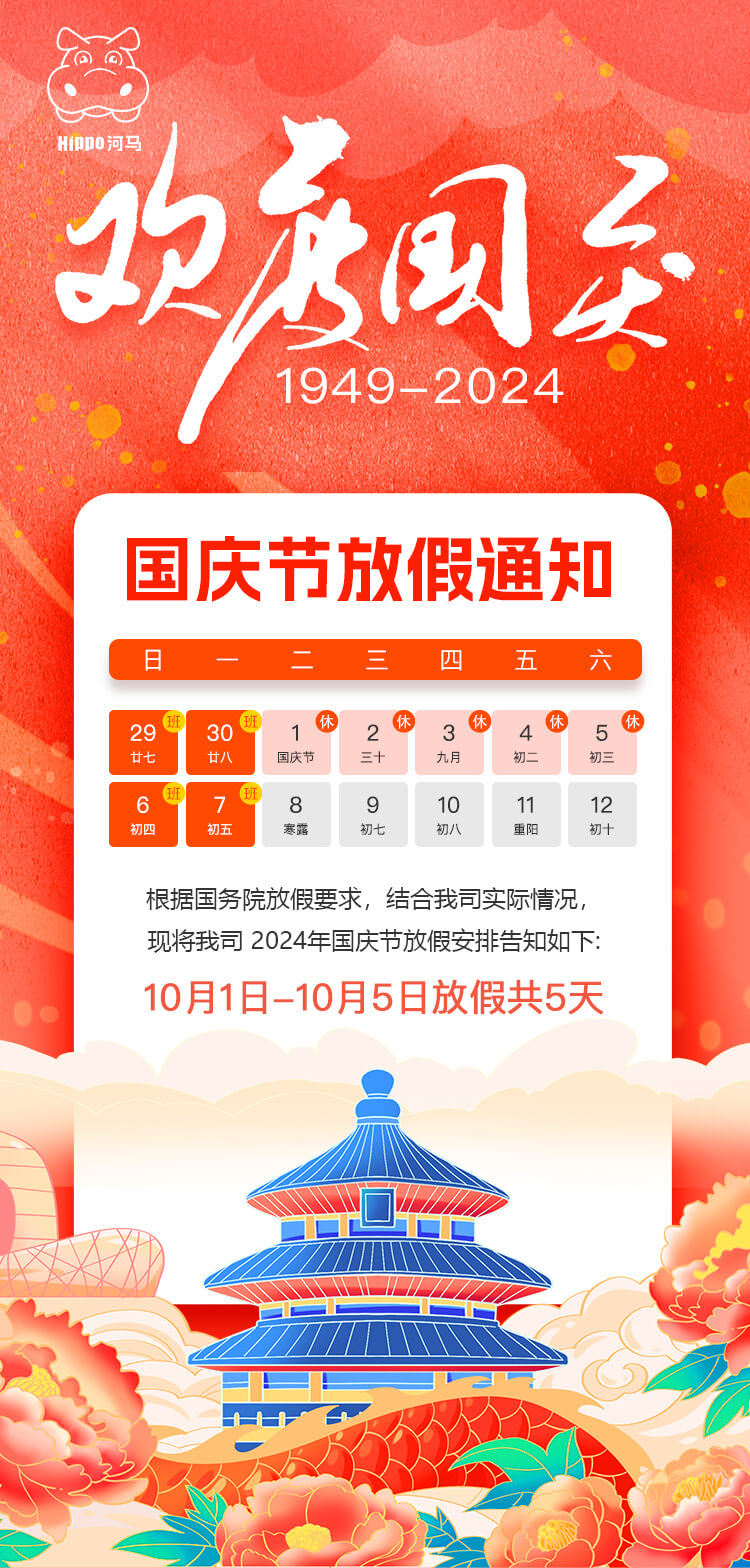 喜迎國慶-關(guān)于河馬10.1放假通知