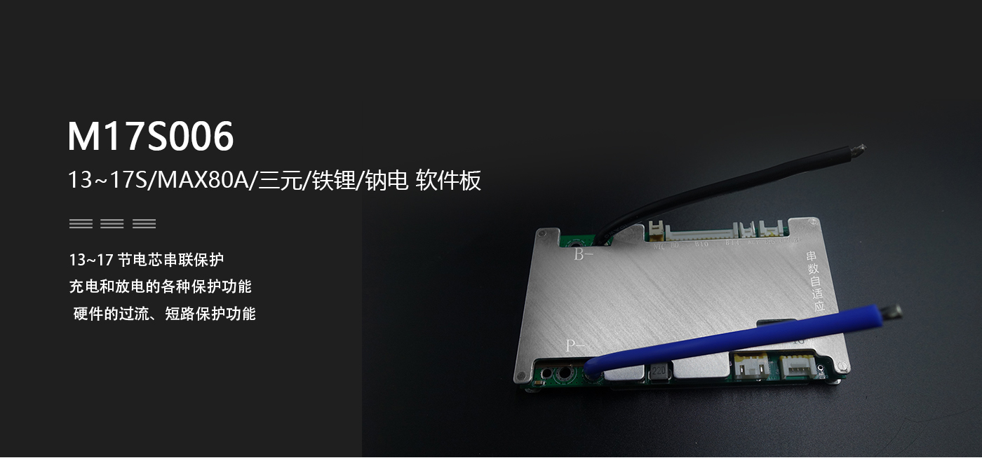 BP-M17S006 是我司專門針對動力電池13~17串電池包而設計的保護板方案;可適用不同化學性質(zhì)的鋰電芯,如鋰離子、鋰聚合物、磷酸鐵鋰等。此保護板帶載能力強,最大持續(xù)電流可達80A。